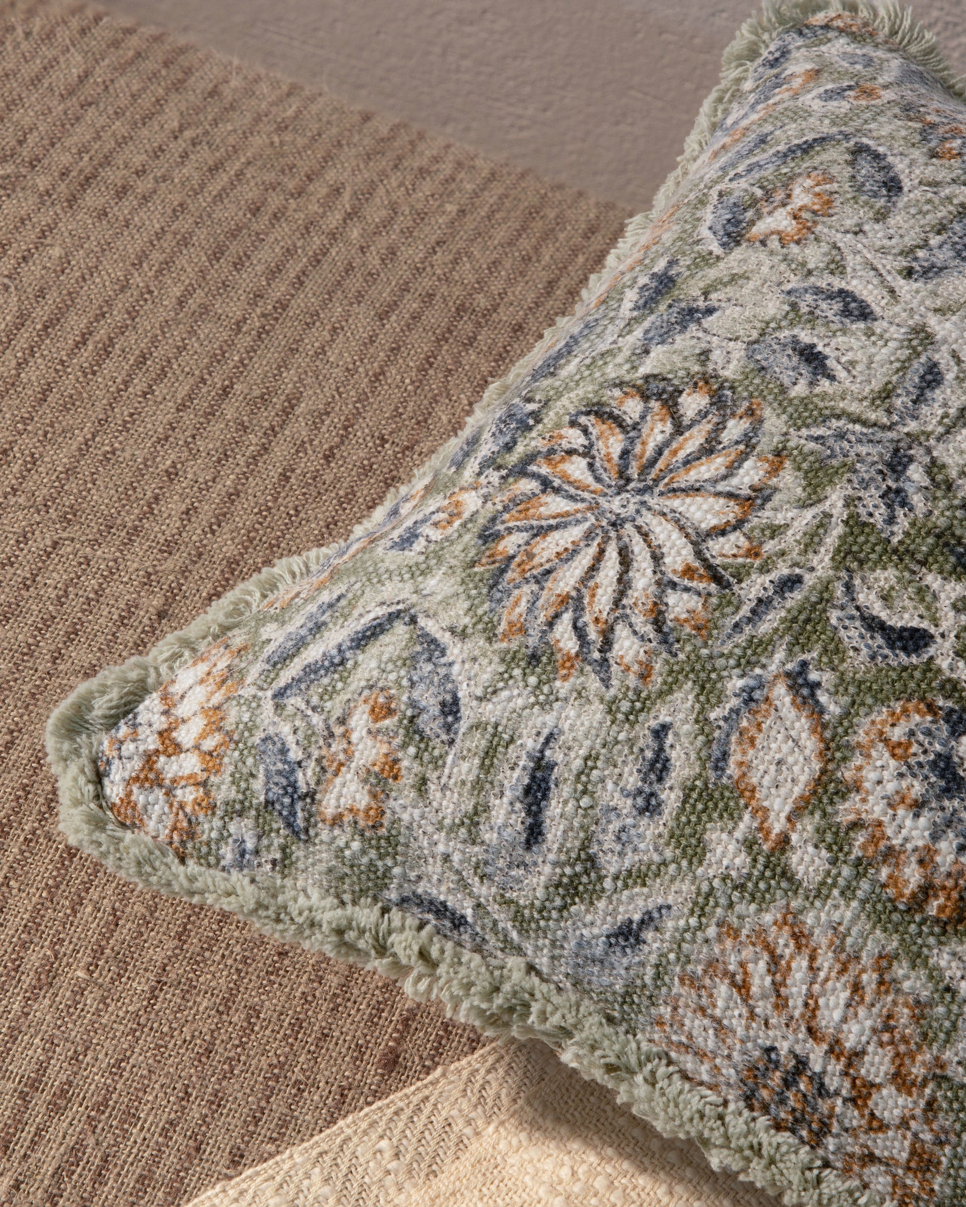 Crafted on premium cotton fabric, this pillow features a subtle floral pattern in earthy tones, making it a perfect match for both traditional and modern decor. Due to the handmade nature of the block printing process, slight variations in color, print alignment, or texture are natural and add to the authenticity and aesthetic appeal of the product. Please note that the actual product color may slightly differ from the image due to photographic lighting.