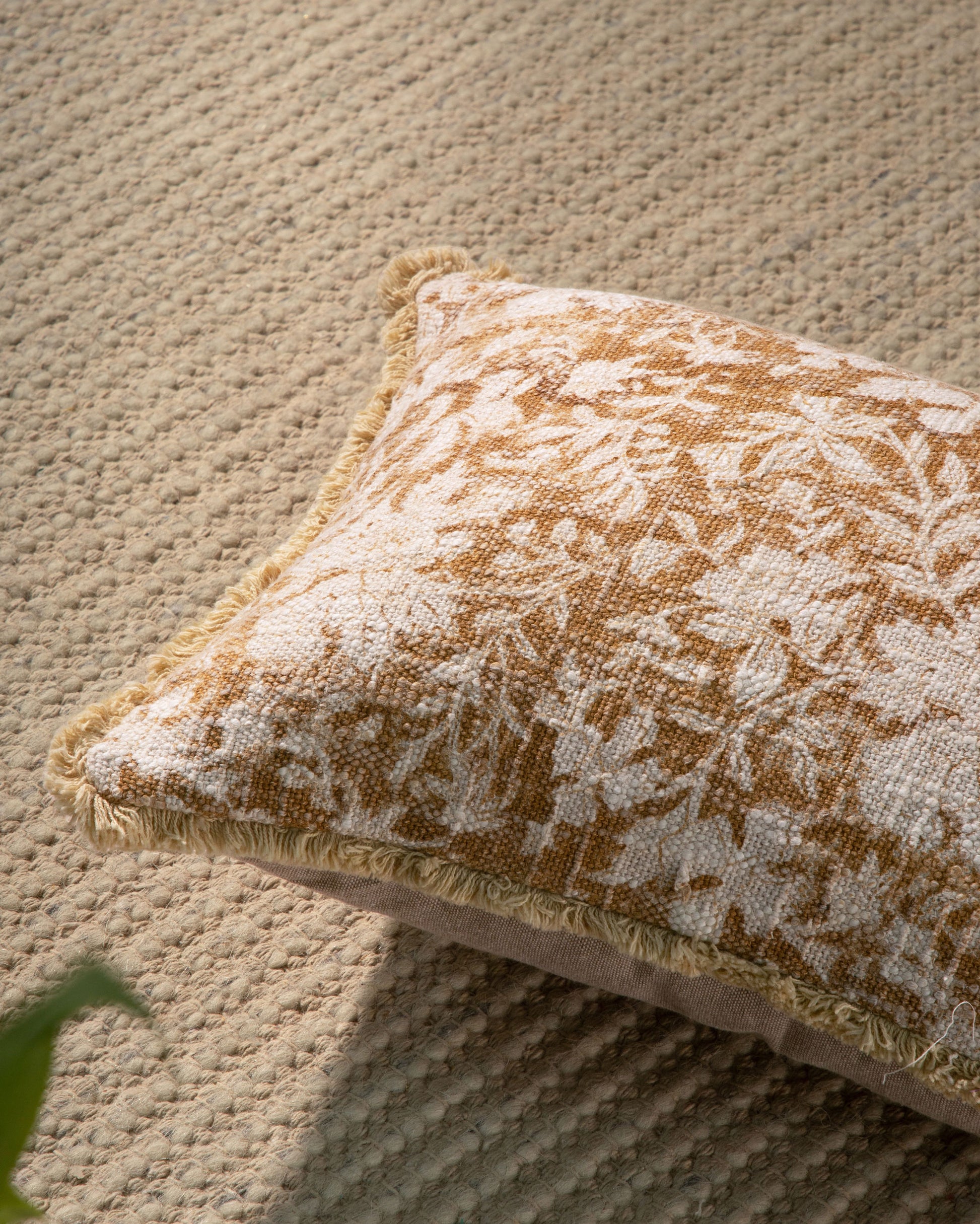 Crafted on premium cotton fabric, this pillow features a subtle floral pattern in earthy tones, making it a perfect match for both traditional and modern decor. Due to the handmade nature of the block printing process, slight variations in color, print alignment, or texture are natural and add to the authenticity and aesthetic appeal of the product. Please note that the actual product color may slightly differ from the image due to photographic lighting.